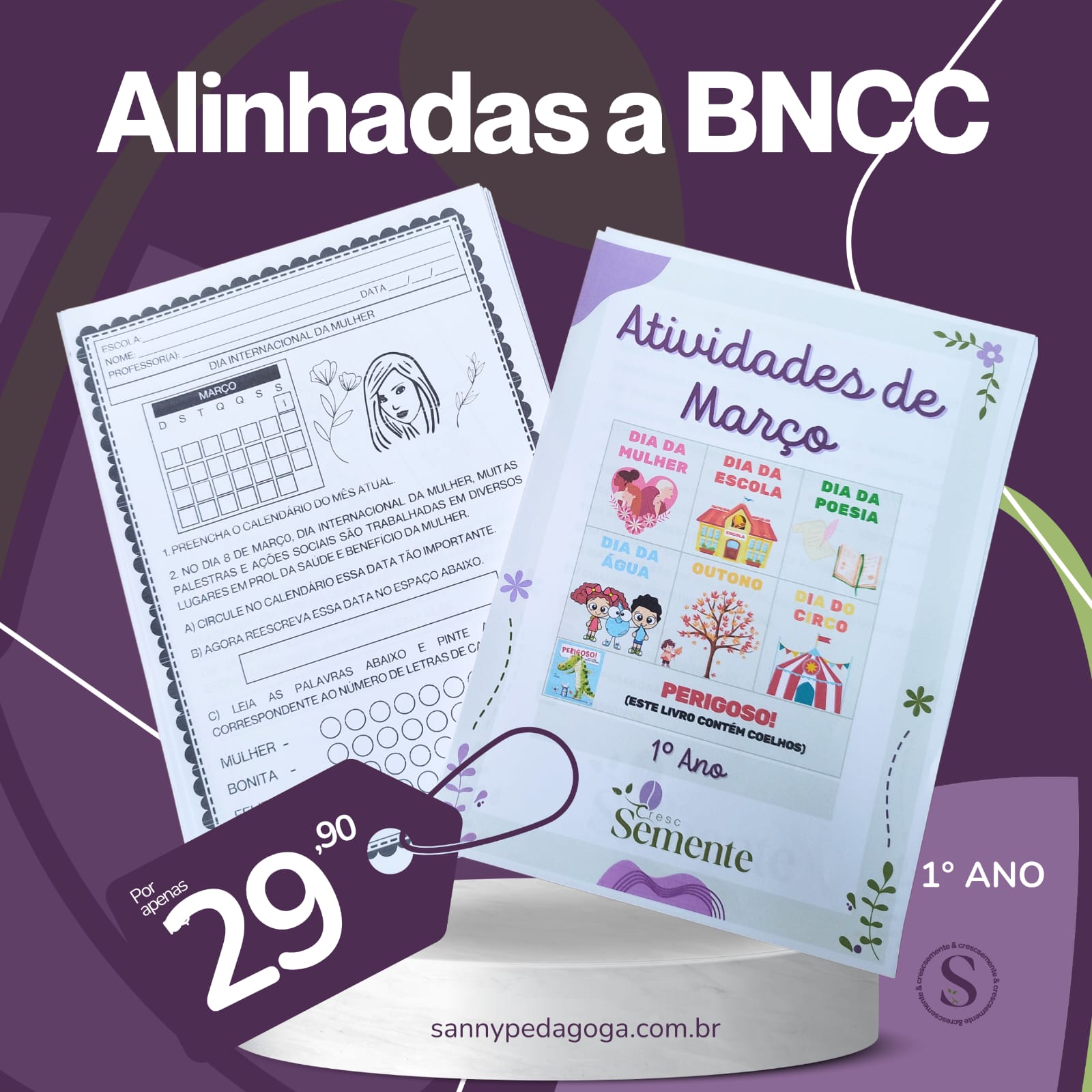 Esse material é formado por um PDF com atividades para turmas de 1º ANO contendo 37 páginas destinadas ao mês de março, todas alinhadas a BNCC e acompanhando os códigos (habilidades) contemplando todas as disciplinas e com algumas temáticas de datas comemorativas referentes ao mês de março.