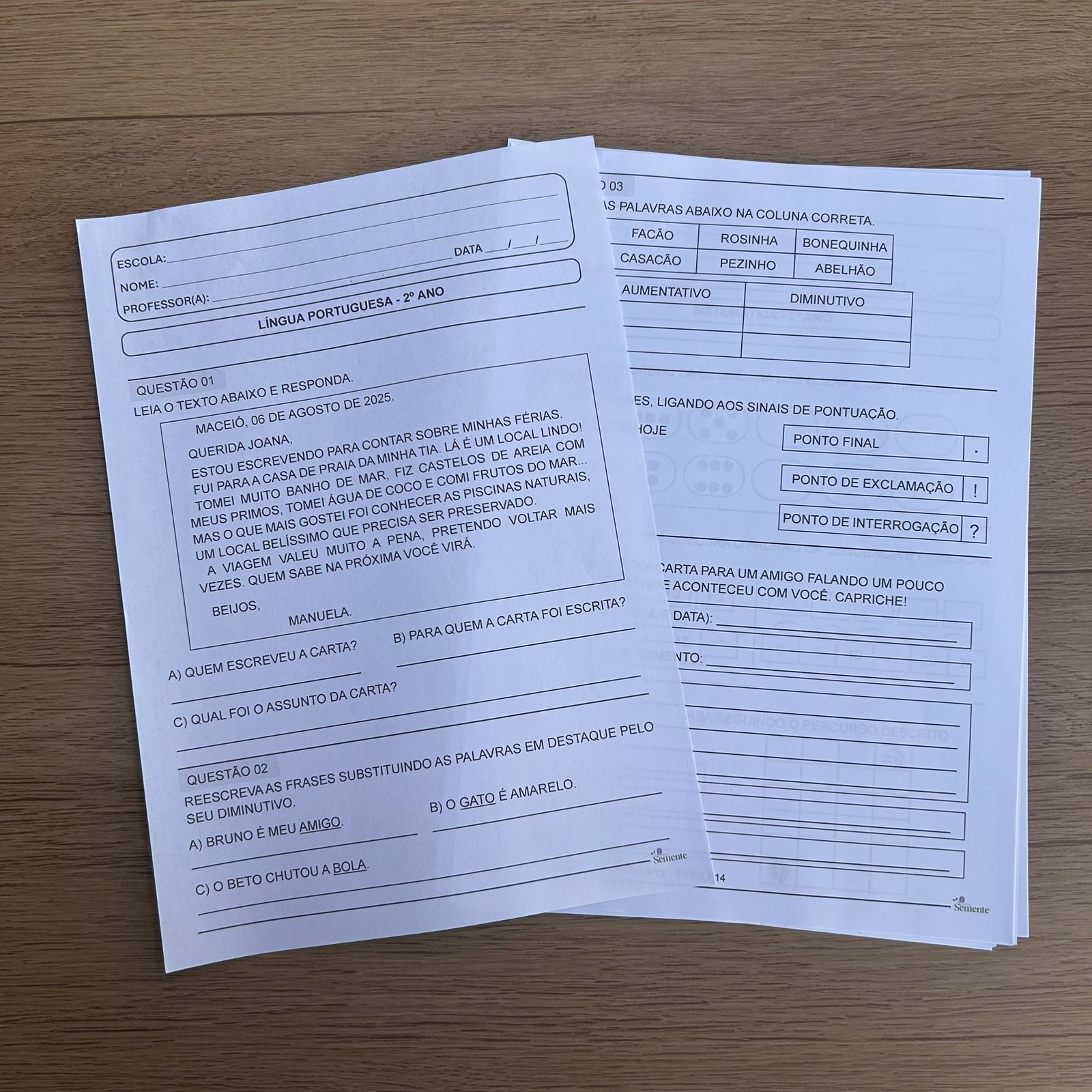 AVALIAÇÕES 2º ANO – 3º BIMESTRE