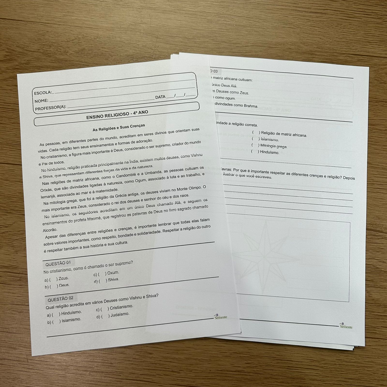 CADA AVALIAÇÃO CONTÉM 10 QUESTÕES. (COM EXCESSÃO DE ENSINO RELIGIOSO E ARTE QUE SÃO 5 QUESTÕES)