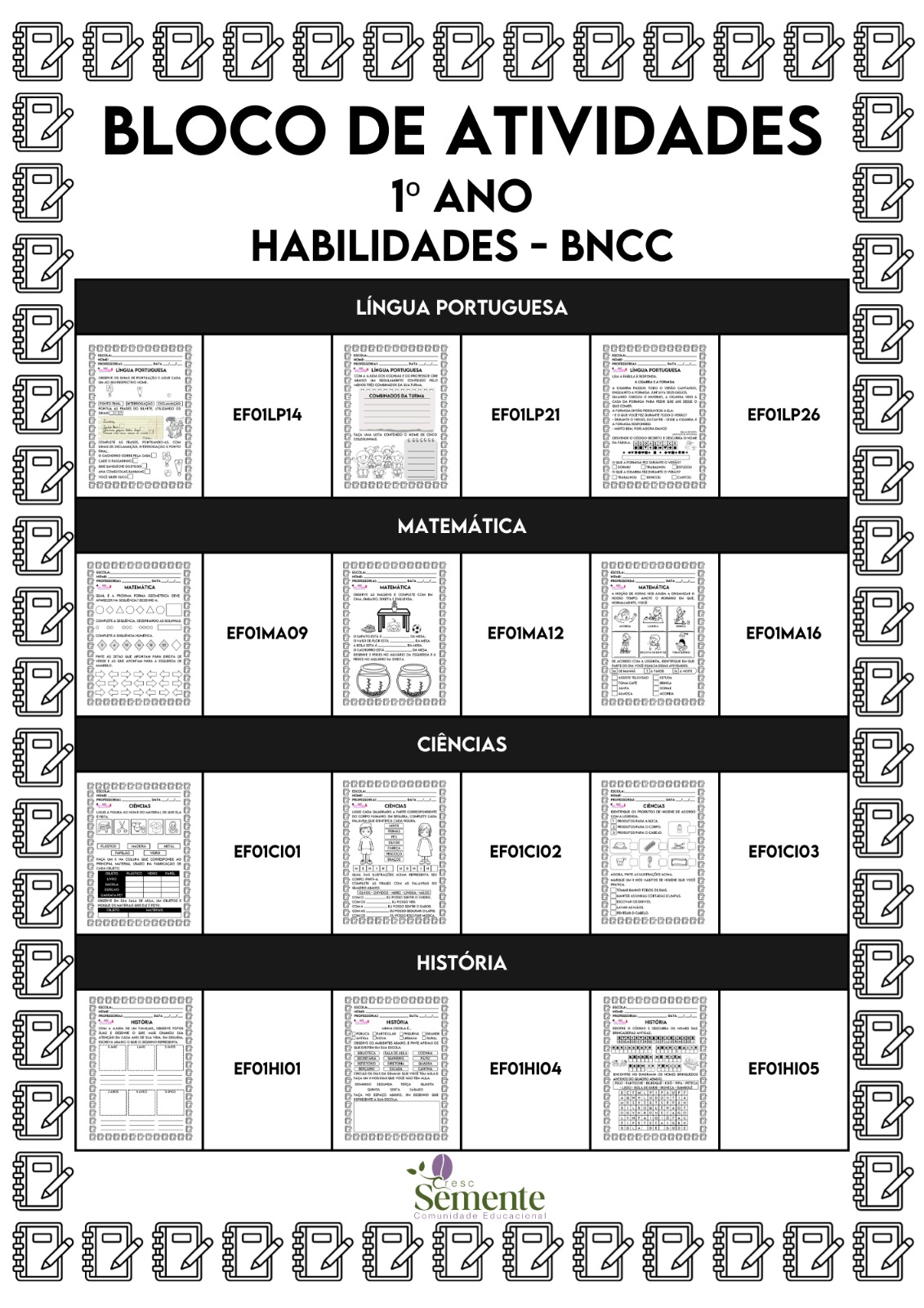 Esse material é um pdf composto por 25 atividades alinhadas a bncc, sendo 3 atividades para cada disciplina, indicada para turmas do 1• ano