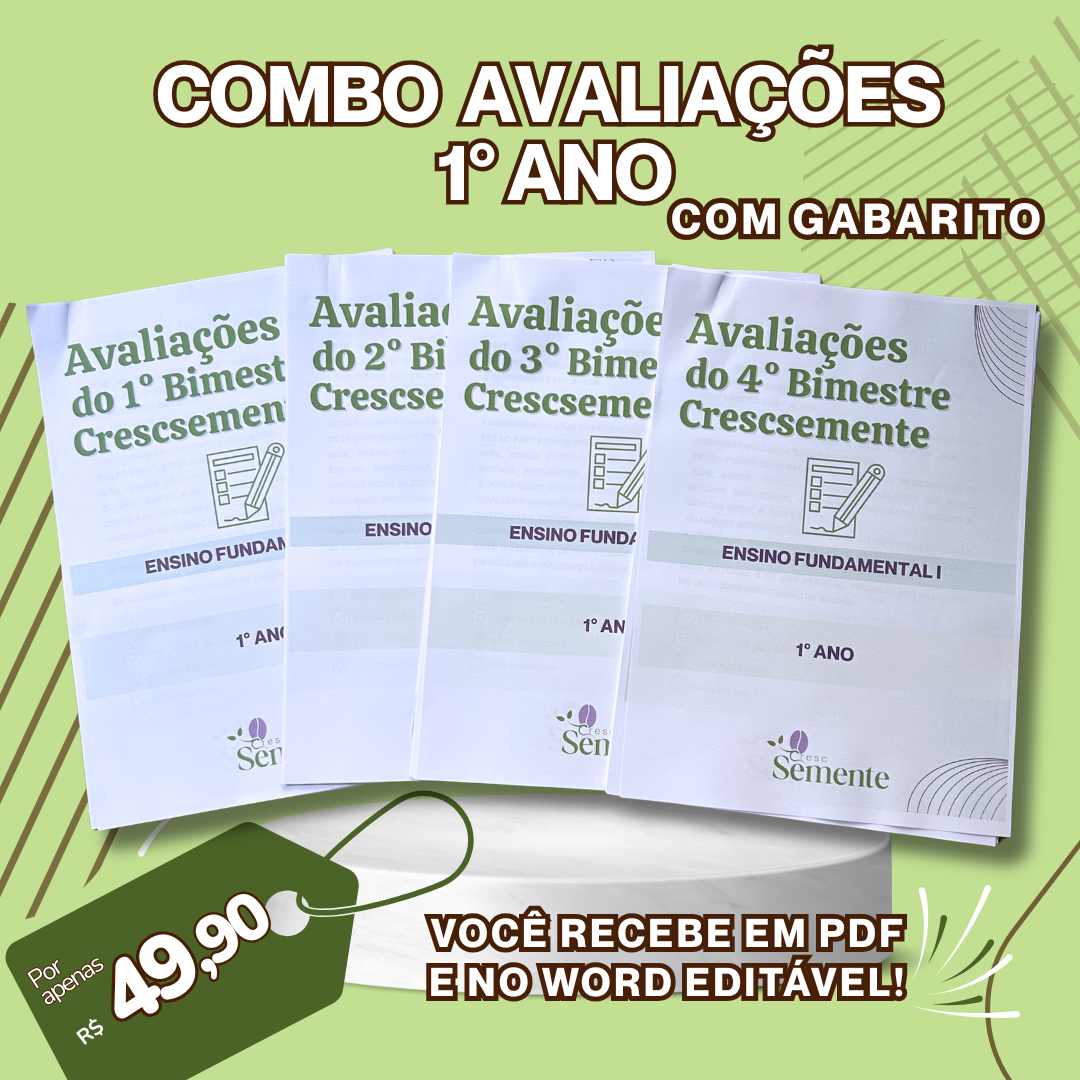 ESSE MATERIAL É COMPOSTO POR AVALIAÇÕES DOS 4 BIMESTRES DO ANO. AO ADQUIRIR VOCÊ RECEBE AS AVALIAÇÕES NO FORMATO WORD (EDITÁVEL) E PDF, ALÉM DE TAMBÉM ACESSAR O GABARITO DE TUDO!