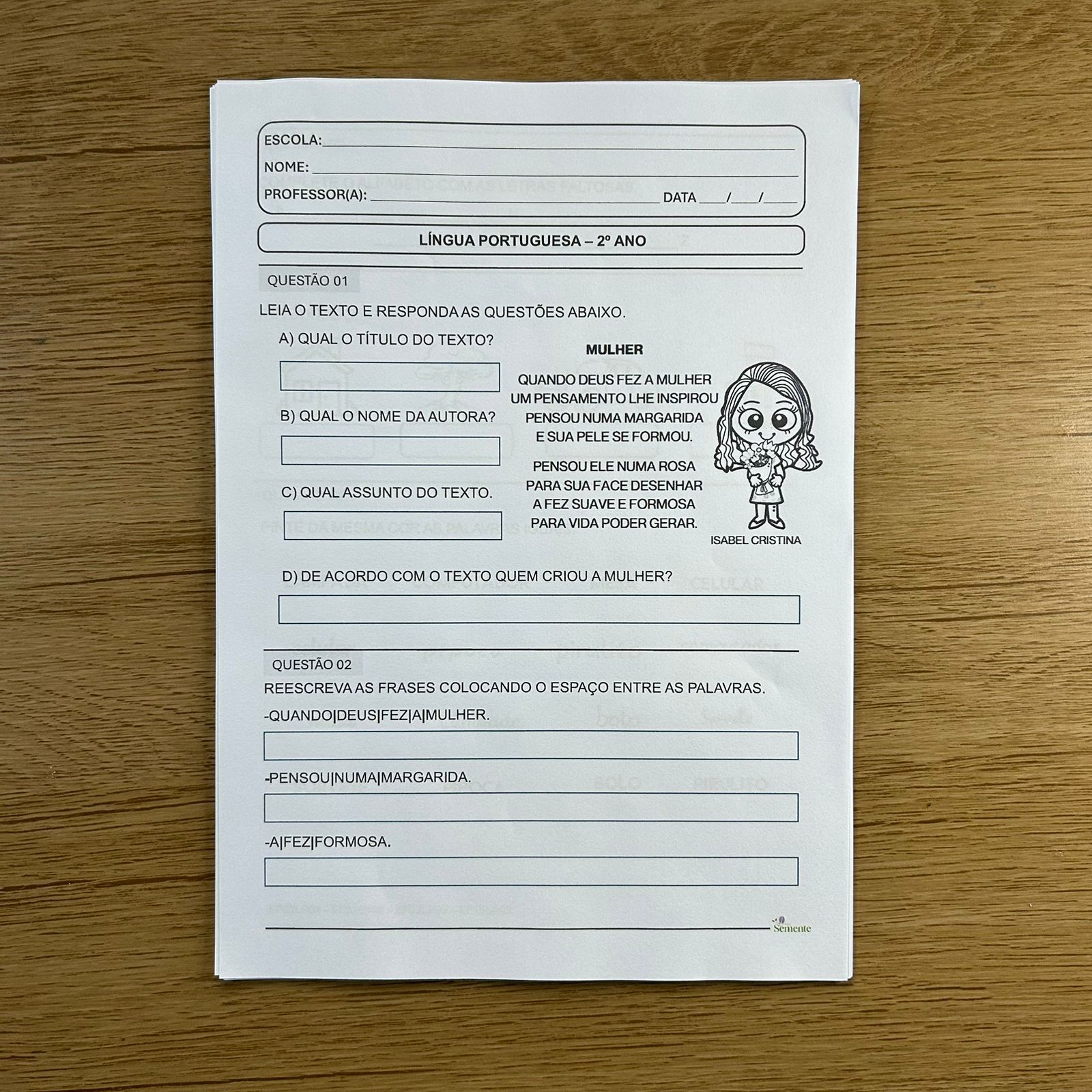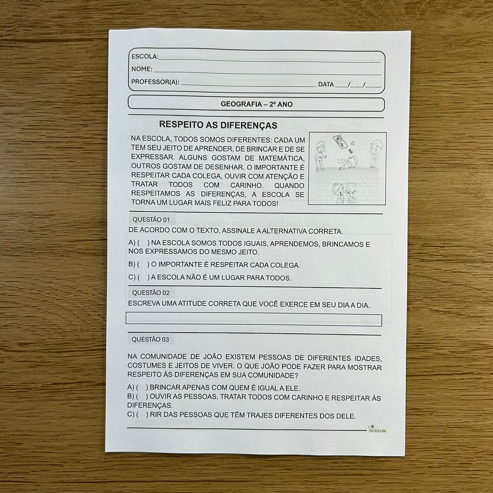 VOCÊ PODE ALTERAR QUESTÕES, ADICIONAR O NOME E LOGO DA ESCOLA E ATÉ MODIFICAR O QUE DESEJAR, BASTA ABRIR O MATERIAL NA VERSÃO WORD ATRAVÉS DE UM COMPUTADOR.