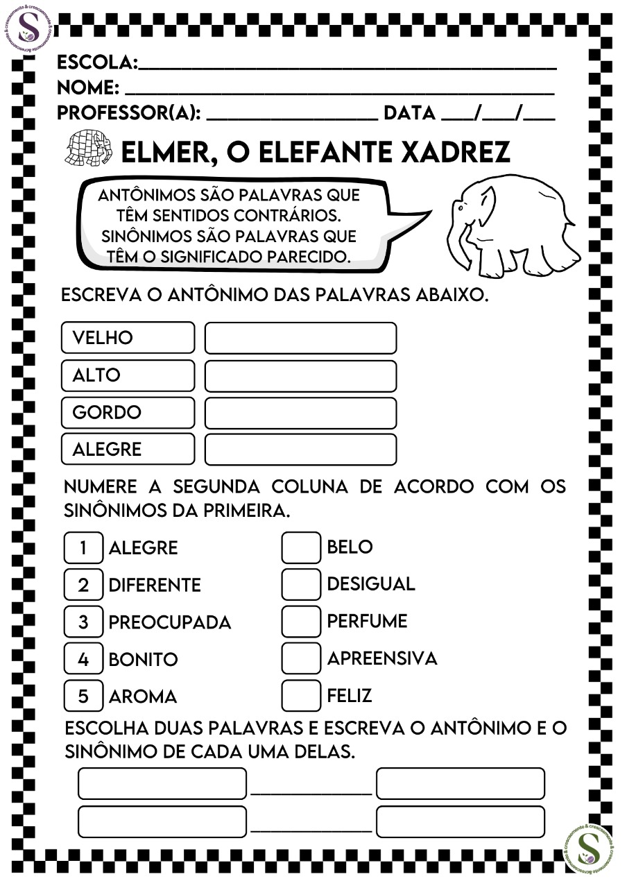 As atividades foram baseadas no livro elmer, o elefante xadrez, seguindo uma sequência lógica e interdisciplinar.
