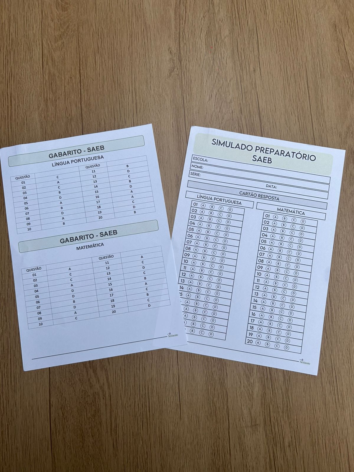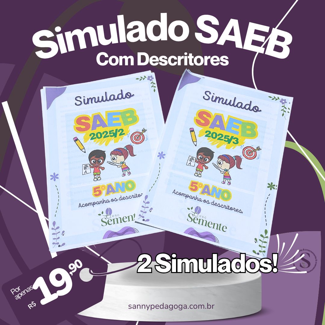 SÃO 2 SIMULADOS NO FORMATO PDF, CADA SIMULADO COM 20 QUESTÕES DE LÍNGUA PORTUGUESA E 20 QUESTÕES DE MATEMÁTICA, TOTALIZANDO 80 QUESTÕES PARA ESSA JORNADA DE PREPARAÇÃO PARA O SAEB!