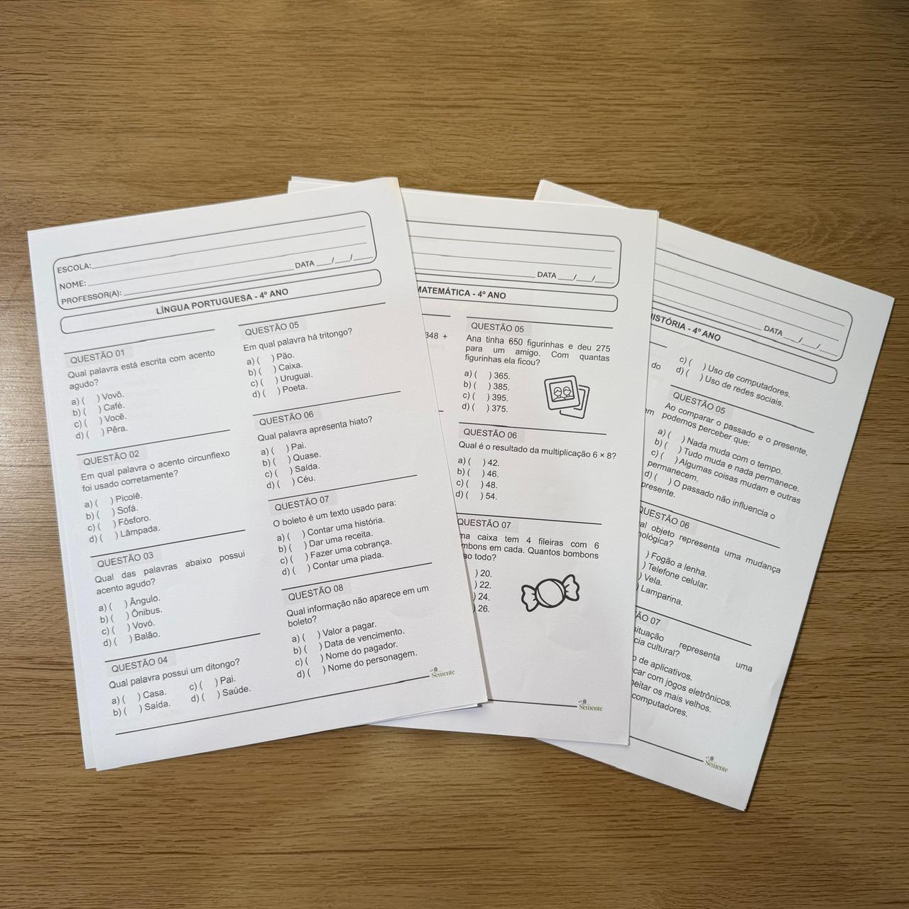 CADA SIMULADO É FORMADO POR 10 QUESTÕES OBJETIVAS, QUE LEVAM A CRIANÇA A ENTENDER ESSE TIPO DE AVALIAÇÃO, REFLETINDO SOBRE AS OPÇÕES DE RESPOSTA E VALIDANDO SUA OPINIÃO E JÁ PREPARANDO O ALUNO PARA AVALIAÇÕES EXTERNAS, QUE SEGUEM ESSE MESMO PADRÃO.