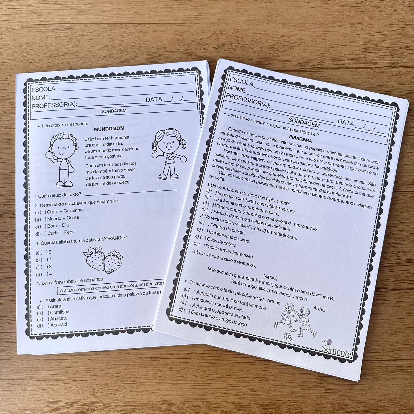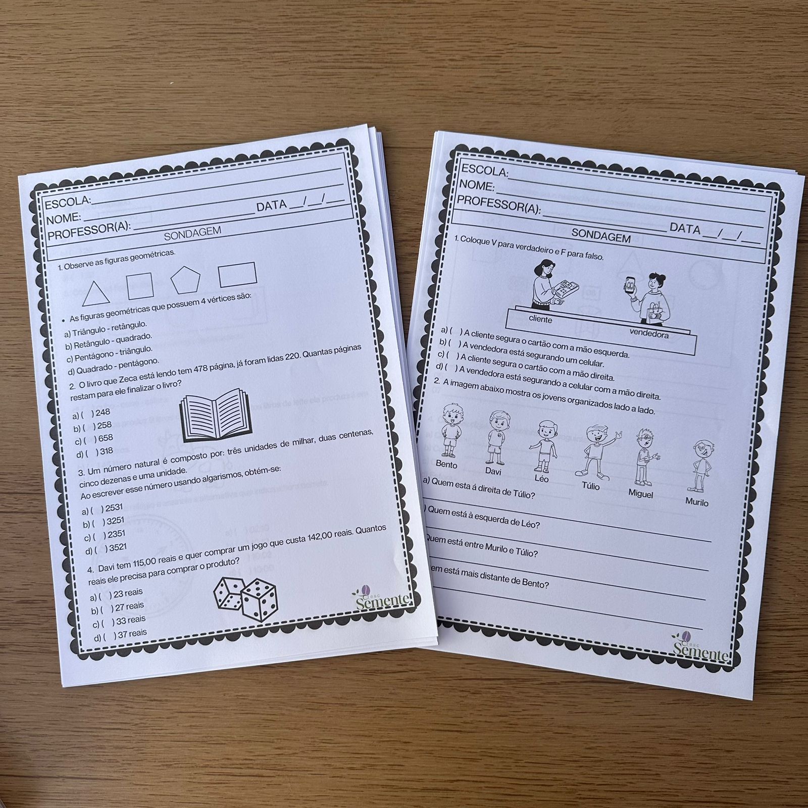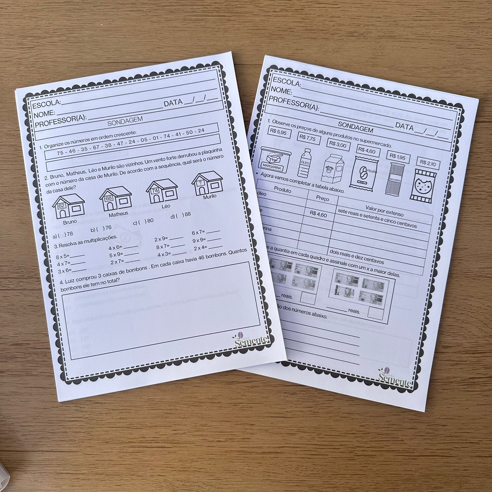 ESSE MATERIAL É UM PDF COM 66 PÁGINAS DE ATIVIDADES DE SONDAGENS DE LÍNGUA PORTUGUESA E MATEMÁTICA, IDEAIS PARA TURMAS DE 3º AO 5º ANO.
